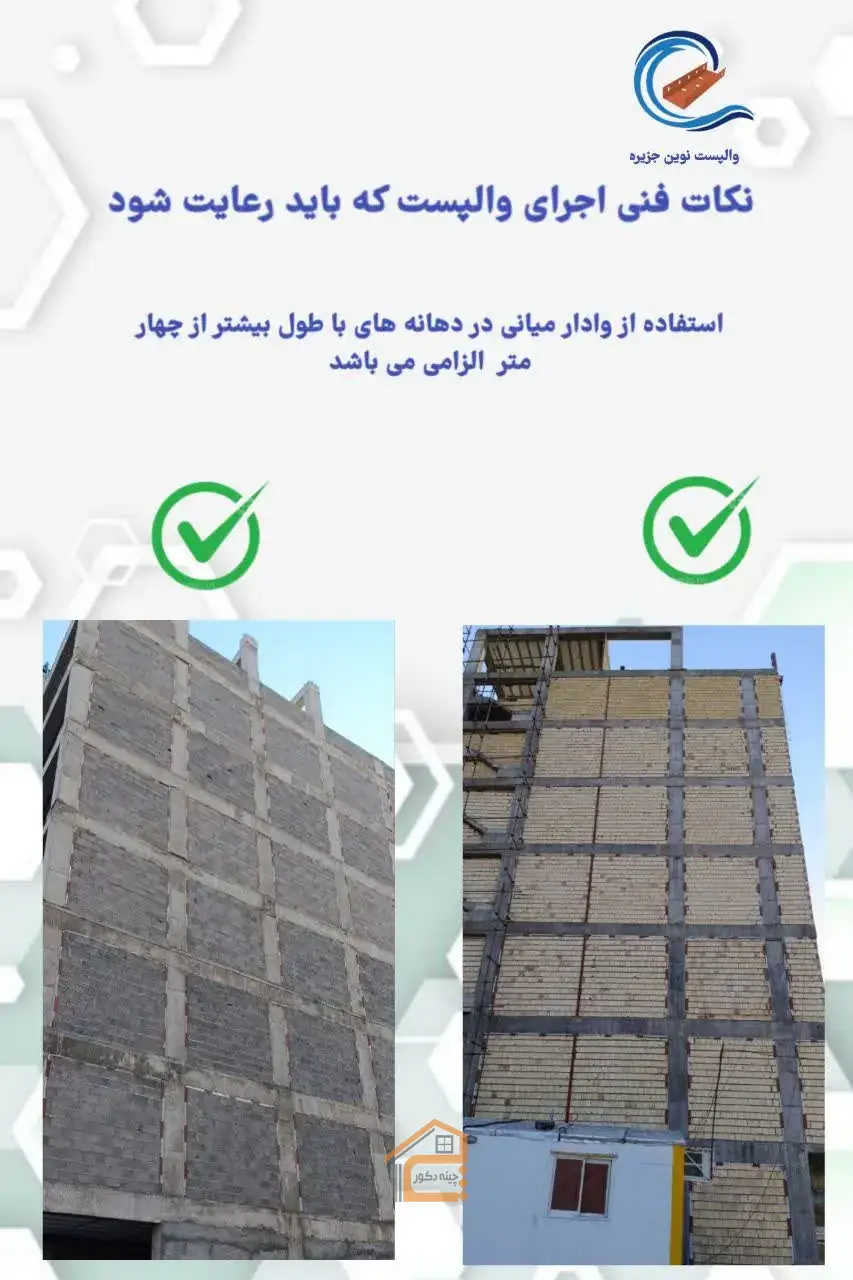 - کاهش بار مرده سازه : با جایگزینی دیوارهای آجری سنگین با سیستم والپست، بار مرده ساختمان تا ۴۰٪ کاهش یافته و در نتیجه هزینههای فونداسیون، ستون و تیر نیز کاهش مییابد.